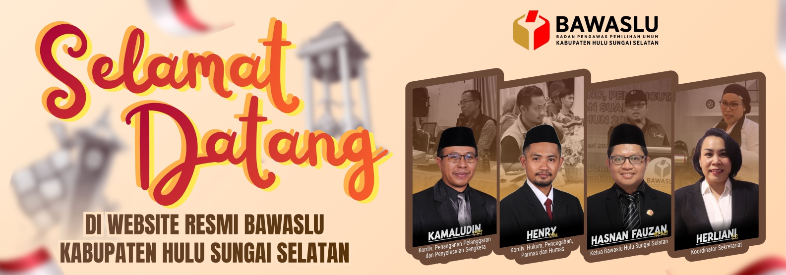 Pengumuman OPEN REKRUTMEN PTPS Lihat Selengkapnya Pengumuman Contoh Pengumuman Lihat Selengkapnya Lapor Pelanggaran Pemilu Hasil Pengawasan Tahapan Pemilu 2024 Ajukan Permohonan Sengketa Proses Pemilu Bagaimana Cara Ikut Awasi Pemilu Lapor Hoaks Pemilu Apa Saja Yang Diawasi Pada Tahapan Pemilu Berita Apel Pagi Bawaslu HSS: Awal dari Pengawasan yang Tak Terlihat Publik humas Senin, April 20, 2026 - 09:00 Mekanisme Laporan Berubah, E-Kinerja ASN Wajib Lapor Tiap Bulan humas Kamis, April 16, 2026 - 08:29 Rapat Mingguan Sekretariat Perkuat Kinerja Kelembagaan humas Kamis, April 16, 2026 - 08:27 Perkuat Sinergi Politik Daerah, Bawaslu HSS Hadiri Kegiatan Kesbangpol humas Selasa, April 14, 2026 - 14:17 Apel Pagi Senin Perkuat Stabilitas dan Harmonisasi Pegawai humas Senin, April 13, 2026 - 14:16 https://sigaplapor.bawaslu.go.id/ https://ppid-hulusungaiselatan.bawaslu.go.id https://sips.bawaslu.go.id/ https://google.com https://jdih.bawaslu.go.id/ Galeri Dokumentasi Kegiatan Apel Siaga Pemilihan 2024 Logistik Pemilihan 2024 OPEN REKRUTMEN PTPS Jadwal Pilkada 2024 Sekretariat Press Release Pimpinan Bawaslu HSS Pencarian Saran dan Pengaduan Saran dan pengaduan dengan untuk kemajuan Bawaslu Ajukan