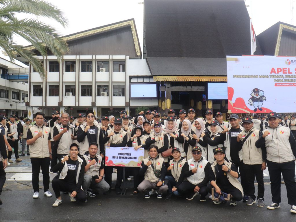 Bawaslu Kabupaten Hulu Sungai Selatan menghadiri kegiatan Apel Siaga Pengawasan dalam menghadapi masa tenang, pemungutan dan penghitungan suara pada Pemilu Tahun 2024 bertempat di halaman kantor Pemko Banjarmasin (Rabu, 07 Februari 2024).
