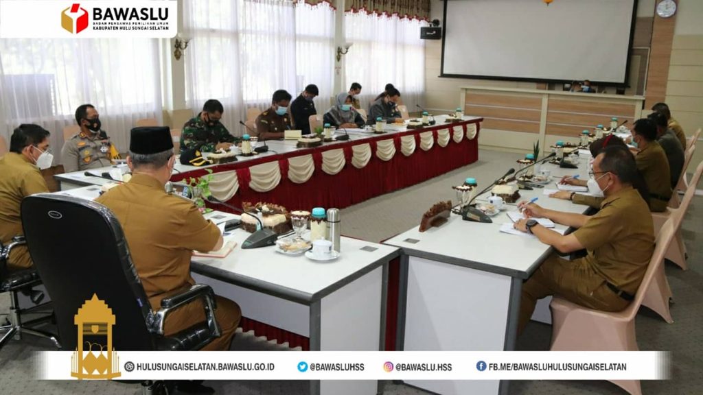 Rapat Koordinasi ini dilaksanakan di aula Rakat Mufakat setda HSS yang diikuti Forkopinda, Badan Pengawas Pemilu (Bawaslu) dan Komisi Pemilihan Umum (KPU) serta dinas terkait dan elemen yang termasuk satgas Penanganan Covid-19.