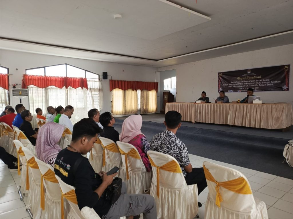 Bawaslu Kabupaten Hulu Sungai Selatan Hadiri Rakor Persetujuan Rancangan Surat Suara Calon Anggota DPRD Kabupaten Hulu Sungai Selatan Pasca Penetapan DCT Pemilu Tahun 2024, Jumat (17/11/2023)