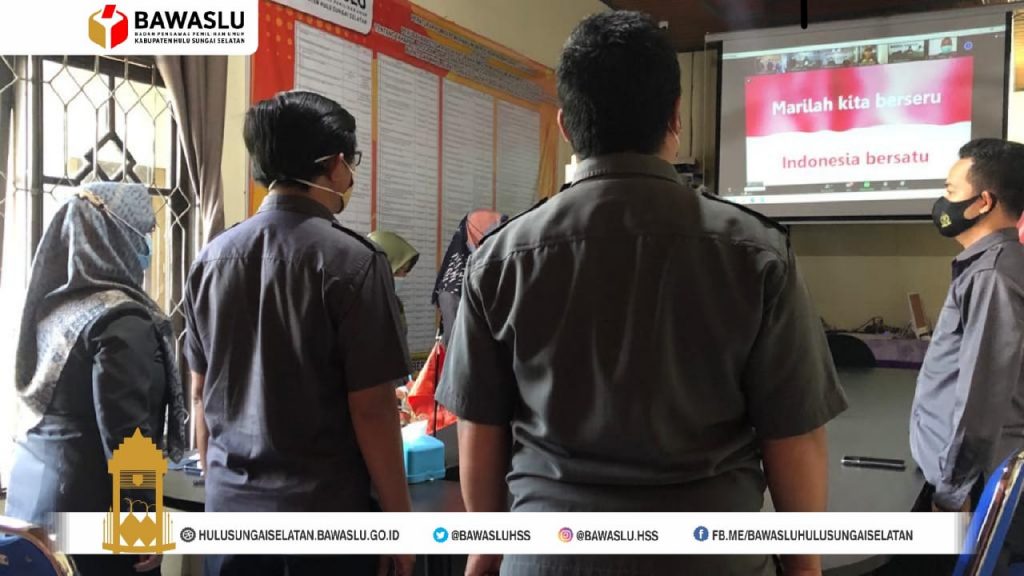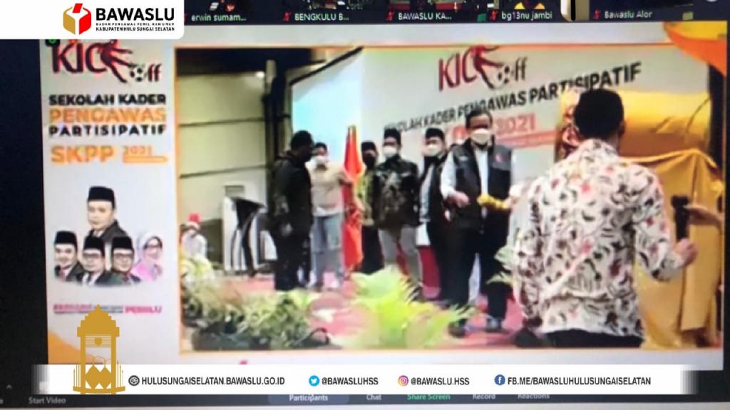 Ketua dan Anggota beserta Staf Bawaslu Kabupaten Hulu Sungai Selatan mengikuti Kick Off SKPP 2021 secara Daring melalui zoom meeting dan youtube Bawaslu RI, kegiatan juga diikuti seluruh Bawaslu Provinsi dan Bawaslu Kabupaten/Kota se-Indonesia.