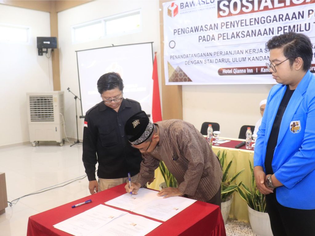 Penandatanganan PKS antara Bawaslu HSS dengan STAI DU dan DPD KNPI HSS