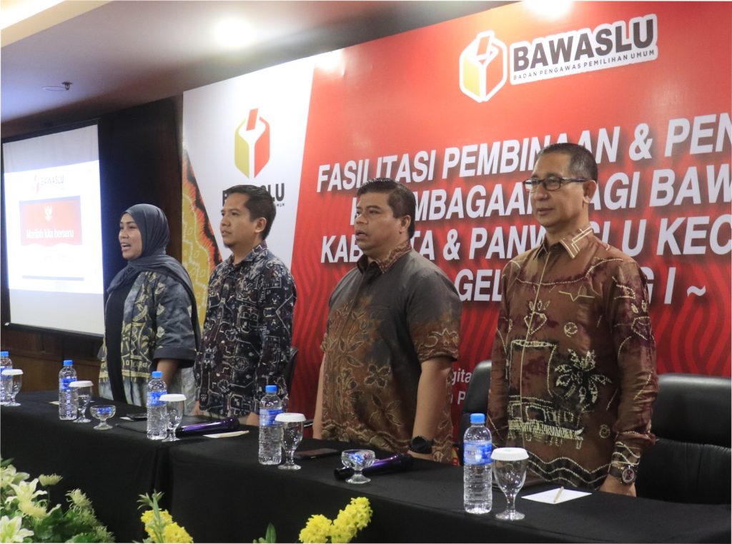 Hadapi tahapan Pemilu tahun 2024 serta untuk membangun soliditas dan sinergitas Pengawas Pemilu dalam melaksanakan tugas, wewenang dan kewajiban, Ketua, Anggota serta Kepala Sekretariat Panwaslu Kecamatan se-Kabupaten Hulu Sungai Selatan Hadiri Fasilitasi Pembinaan dan Penguatan Kelembagaan Bagi Bawaslu Kabupaten/Kota dan Panwaslu Kecamatan bertempat di Nasa Hotel