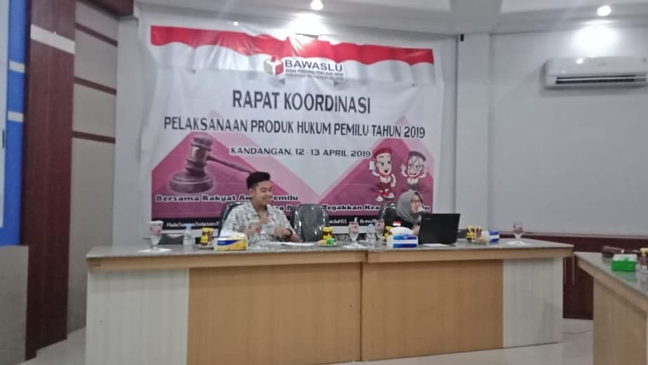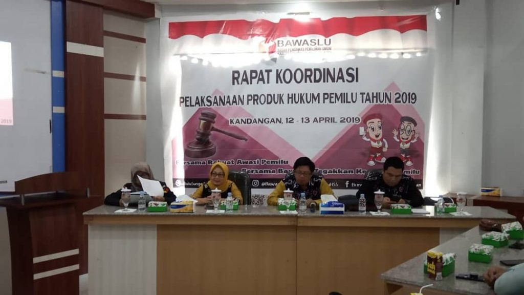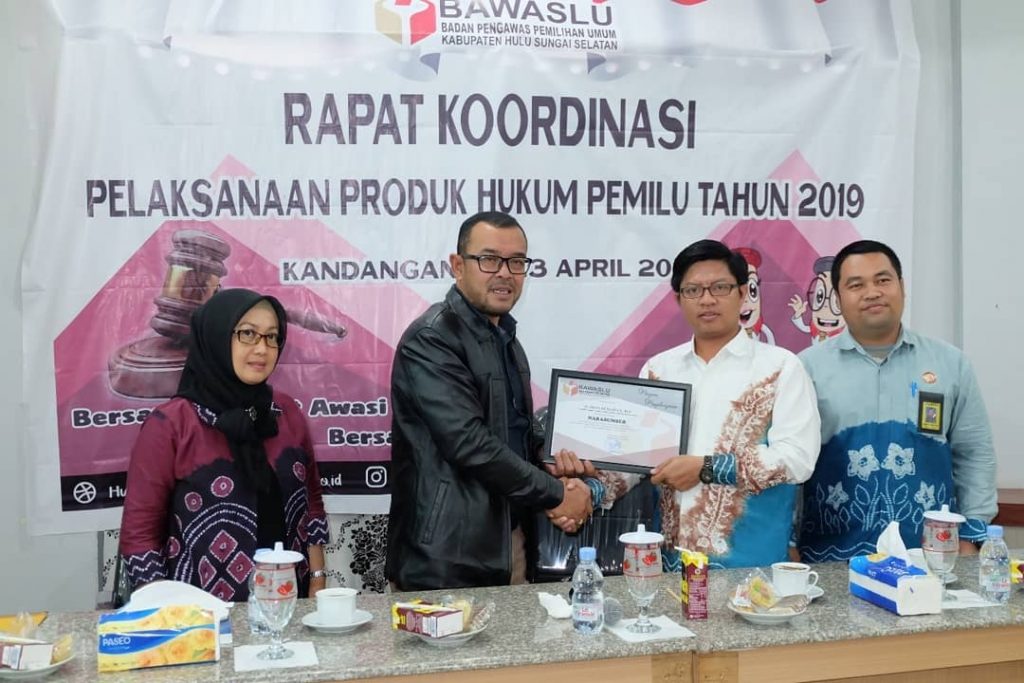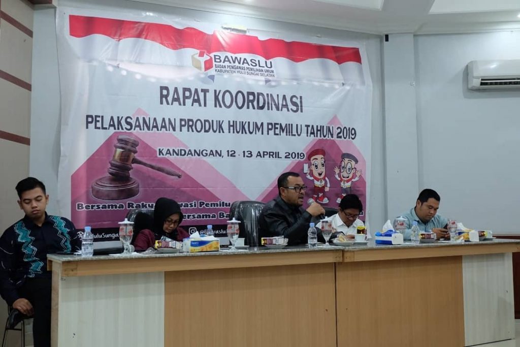 BawasluHSS kembali melaksanakan kegiatan Rapat Koordinasi Pelaksanaan Produk Hukum Pemilu Tahun 2019" yang dilaksanakan di hotel Grand Sandaga Syariah Kandangan tanggal 12-13 April 2019.